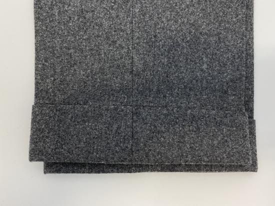通常のダブル仕上げでは、折り返しに10センチ程度の生地が必要ですが、この製品はカブラの中を空洞にすることで、ダブル幅プラス3センチの折り返しで実現可能です。少し段差が生じるものの、外観には影響がなく、スタイリッシュな印象を保ちます。